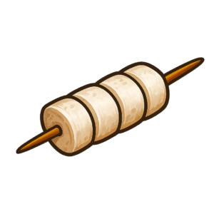 Suave, esponjoso y listo para derretirse al fuego. Cuatro malvaviscos blancos sobre palito, tostados hasta quedar doraditos por fuera y cremosos por dentro. Perfecto para niños… y pa’ los grandes también. 🔥✨